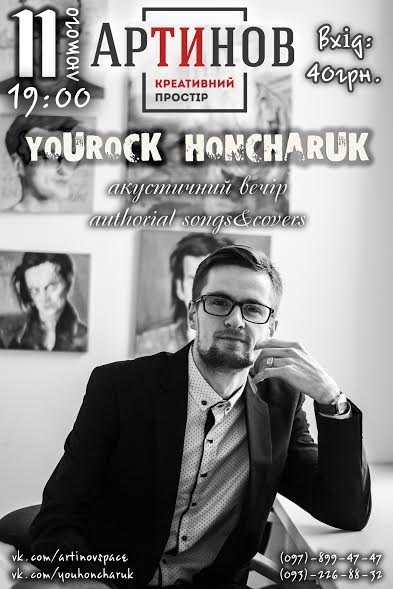 Акустичний вечір приємної, ліричної музики, від Юрія Гончарука, а також за участю Бабійця Данила і Тані Липовенко. Прозвучать кавера на відомі пісні та авторські композиції, наповнені мелодійними, приємними барвами в поєднанні з філосовським і відвертим діалогом самого з собою.