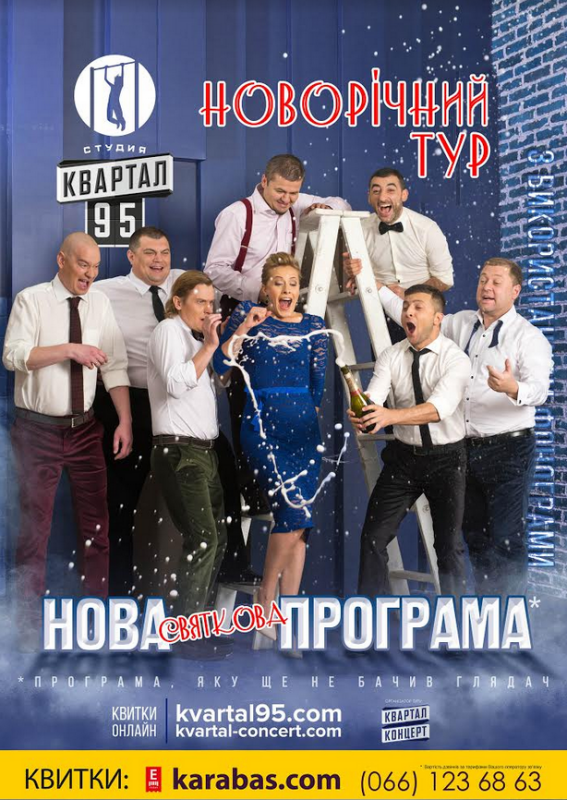 В новом году новой программой Студия «Квартал 95» радует своих зрителей. После триумфальных гастролей в Америке и Австралии главные комики страны готовы смешить украинцев. Владимир Зеленский, Евгений Кошевой, Юрий Крапов и все любимые «кварталовцы» скоро в твоем городе. Новые образы, свежие шутки, актуальные пародии, - все это в одном неповторимом концерте.