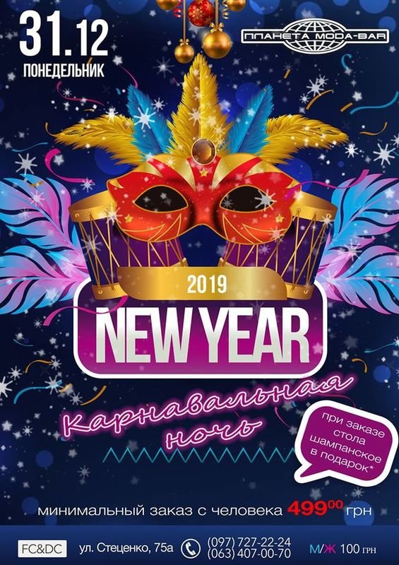 Вечеринка Карнавальная ночь, Новый Год 2019 в Виннице, ночной клуб Планета Мода-бар