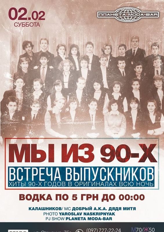 Вечеринка Мы из 90-х Встреча выпускниковх в ночном клубе Планета Мода-бар, Винница