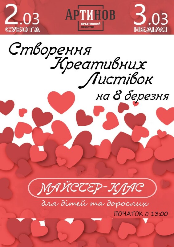 В переддень 8 березня буде проведено 2 майстер-класи, у суботу та неділю у зручних для усіх час.