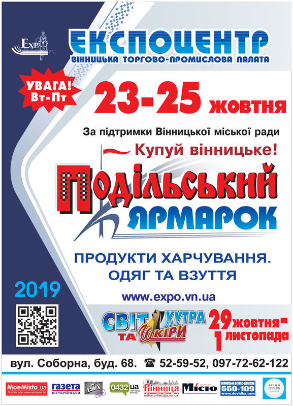 Экспоцентр Винницкой торгово-промышленной палаты приглашает посетить 23-25 октября выставка "ПОДОЛЬСКИЙ ЯРМАРКА", который проходит при поддержке Винницкого городского совета в рамках акции "Покупай винницкое!".