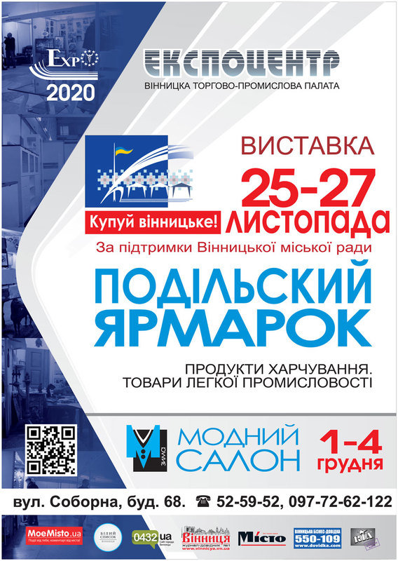 Экспоцентр Винницкой торгово-промышленной палаты приглашает с 25 по 27 ноября посетить выставку "ПОДОЛЬСКАЯ ЯРМАРКА", который проходит при поддержке Винницкого городского совета в рамках акции "Покупай винницкое!".