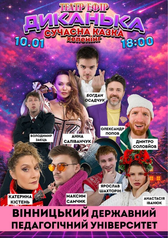 «Диканька» — це сучасне сценічне переосмислення відомої різдвяної історії Миколи Гоголя «Ніч перед Різдвом», у якому класичний сюжет поєднується з елементами хепенінгу та актуальною театральною мовою.