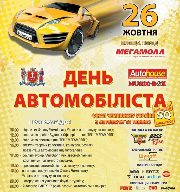 День автомобіліста у Вінниці! Фінал чемпіонату України з автозвуку та тюнінгу! Вас очікуватиме святкова програма! Завітайте та відсвяткуйте це свято, з усіма автомобілістами Вінниці!