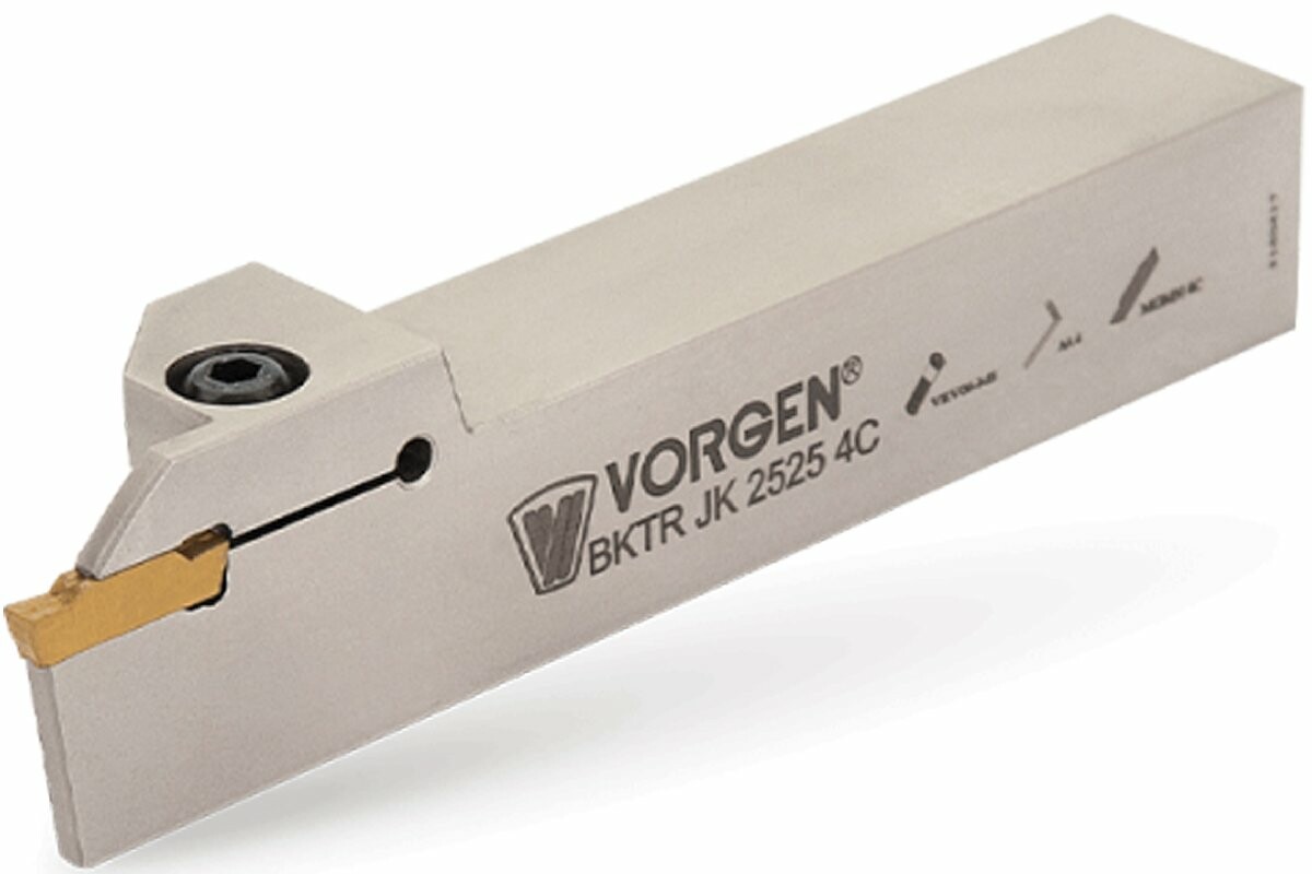 2. Резец токарный канавочный отрезной BKTR-JK-2525-3C-T22 под пластину MGM.300 (KORLOY) (артикул 040189) - универсальный вариант для прорезания канавок и аккуратного отделения деталей от заготовки, снижает вибрацию. Удобное использование при серийной обработке.