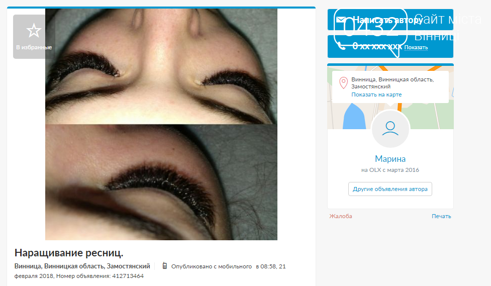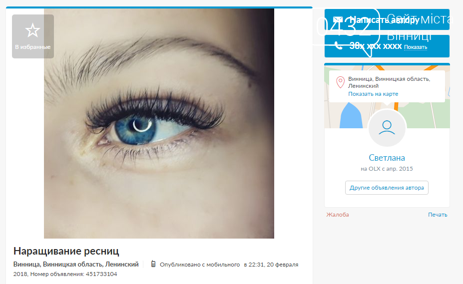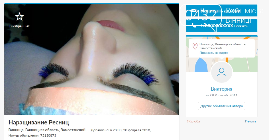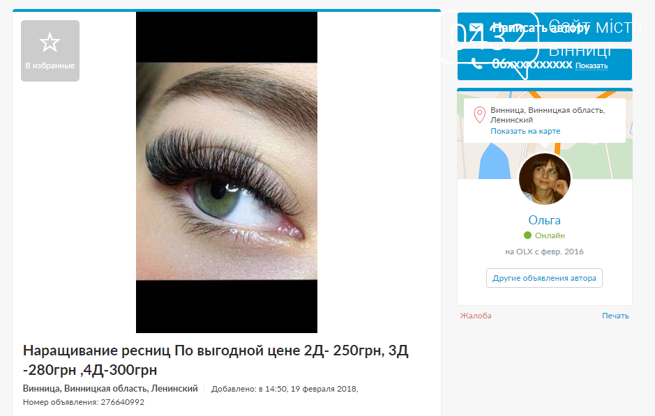 «Выполняю любой объем, который позволит сделать ваш взгляд шикарным если ресничек у вас мало или они очень тонкие», - пишет она в объявлении.