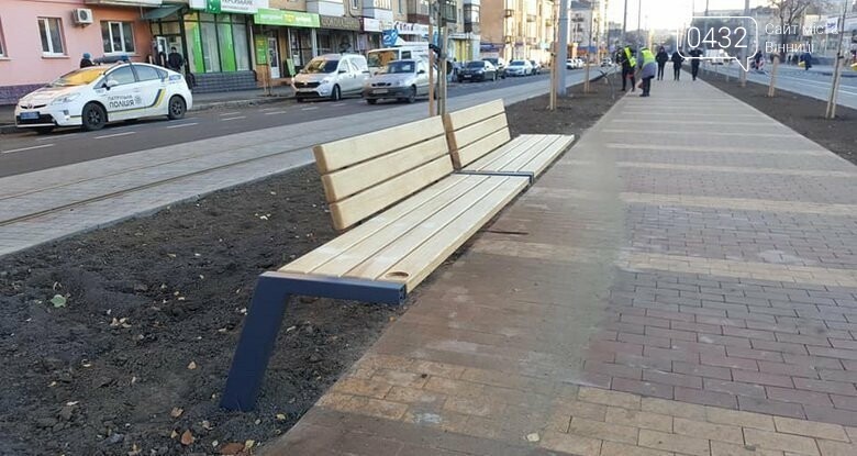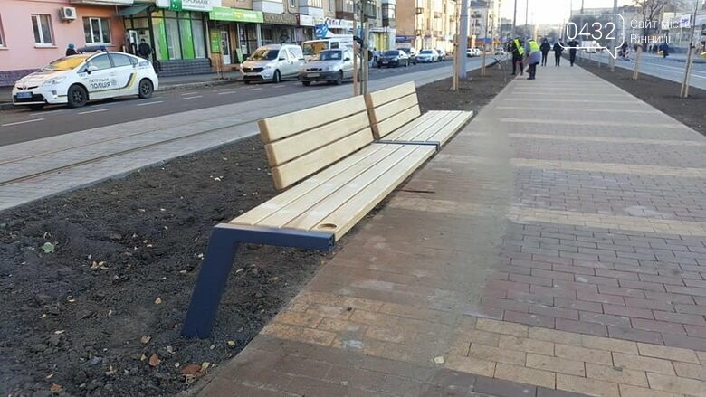 В Виннице продолжается комплексная реконструкция улицы Замостянской. 16 ноября, утром, на аллее разместили несколько оригинальных лавочек. Они отличаются от привычных своей формой.