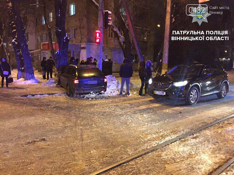 «25-го января около 20 часов в Виннице произошло дорожно-транспортное происшествие между тремя автомобилями. Водитель «Шкоды» проехал перекресток улиц Академика Янгеля и Замостянская на запрещающий красный сигнал светофора и совершил столкновение с «Мерседесом», который двигался в режиме маршрутного такси. После этого нарушитель столкнулся еще и с «Мазда СХ 5» и остановился в дереве », - сообщила пресс-служба патрульной полиции Винницкой области.