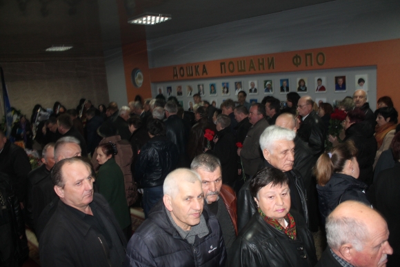 Під час прощання люди постійно підходили люди. В будівлі практично вже не було місця де стати. Люди між собою говорили, якою доброю та мудрою людиною був покійний.