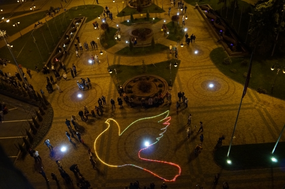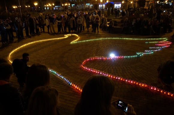 У День Перемоги вінничани виклали з лампадок «Птаха миру»