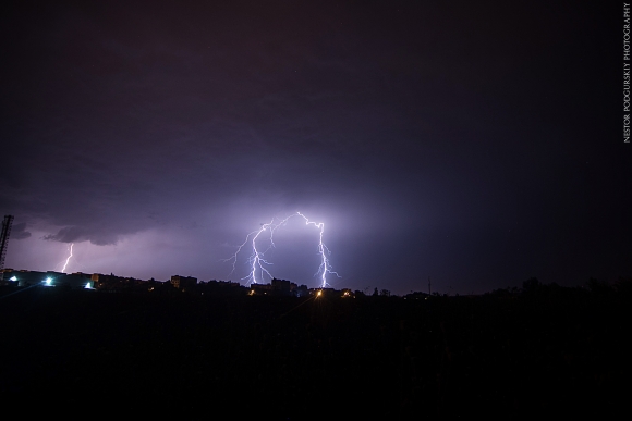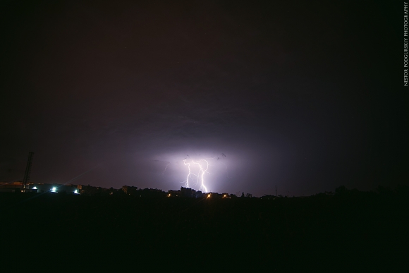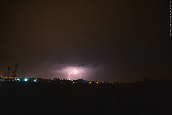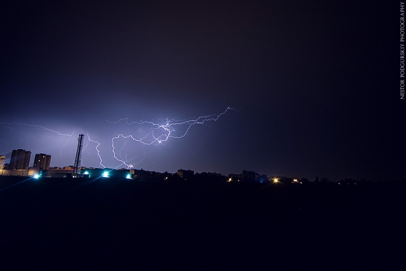 - Коли прийшли на поле біля ТЦ "Шоку", небо було чисте. Та поки збігав додому за технікою, поки ми її розклали, погода змінилась, - розповідає Нестор Подгурський, - Гуркіт блискавок почався десь о першій ночі. Знімати було неважко. Блискавка була в районі Старого міста, до нас не дійшла. Вже коли повертались, трошки пішов дощ.