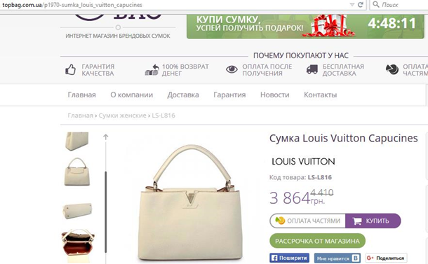 Об этом написали авторы проекта "Депутаты.ФотоЛикс", опубликовав в Twitter соответствующее фото сумки Louis Vuitton Сapucines.