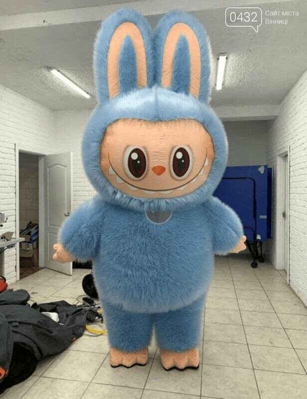 Надувной костюм Лабубу компании Слон изготовлен из мягкого, приятного на ощупь искусственного меха.